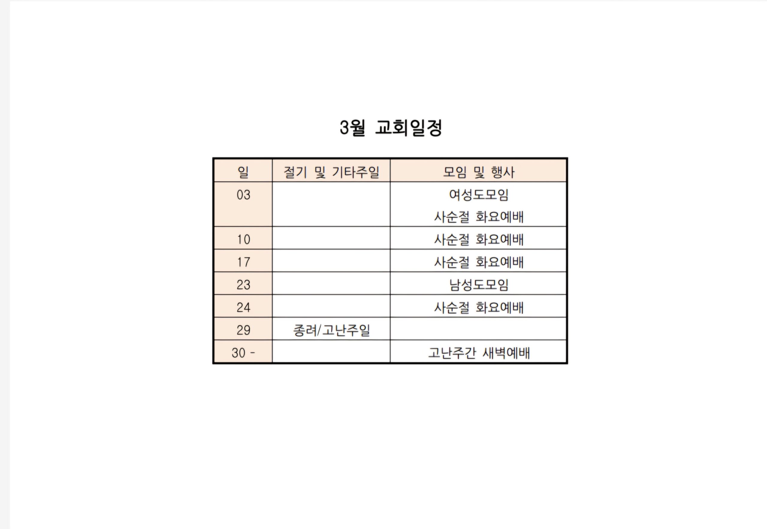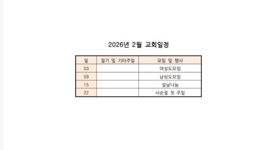 • 사순절 화요예배: 저녁8시 교회